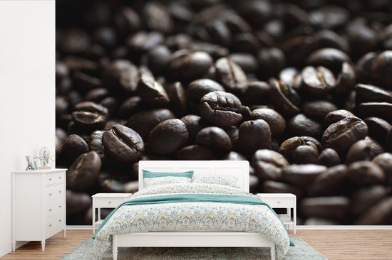 Papier peint photo vinyle - Grains de café torréfiés marron foncé au goût amer largeur 450 cm x hauteur 300 cm - Tirage photo sur papier peint (disponible en 7 tailles)