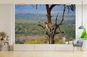 Papier peint photo vinyle - Guépard dans un arbre à la recherche d'une proie largeur 450 cm x hauteur 300 cm - Tirage photo sur papier peint (disponible en 7 tailles)