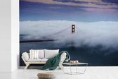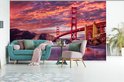 Papier peint photo vinyle - Le pont du Golden Gate avec un beau ciel violet largeur 385 cm x hauteur 240 cm - Tirage photo sur papier peint (disponible en 7 tailles)
