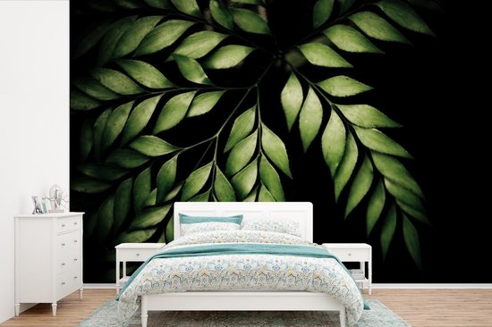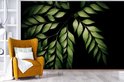Papier peint photo vinyle - Les branches d'une fougère sur fond noir largeur 330 cm x hauteur 220 cm - Tirage photo sur papier peint (disponible en 7 tailles)