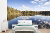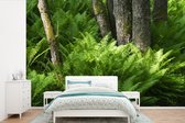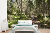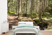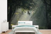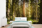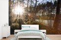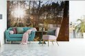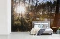 Papier peint photo vinyle - Les rayons du soleil brillent entre les arbres du parc national de Nuuksio en Finlande largeur 360 cm x hauteur 240 cm - Tirage photo sur papier peint (disponible en 7 tailles)