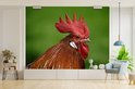 Papier peint photo vinyle - Mohawk rouge d'un coq dans la nature largeur 375 cm x hauteur 300 cm - Tirage photo sur papier peint (disponible en 7 tailles)