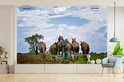 Papier peint photo vinyle - Un fermier amish laboure sa terre avec des chevaux de largeur 405 cm x hauteur 260 cm - Tirage photo sur papier peint (disponible en 7 tailles)
