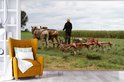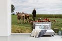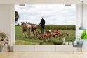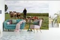 Papier peint photo vinyle - Un homme utilise ses chevaux pour labourer son champ largeur 420 cm x hauteur 280 cm - Tirage photo sur papier peint (disponible en 7 tailles)