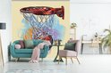 Papier peint photo vinyle - Une illustration d'un ballon de basket frappant la cible à pleine vitesse, largeur 280 cm x hauteur 280 cm - Tirage photo sur papier peint (disponible en 7 tailles)