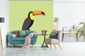 Papier peint photo vinyle - Une illustration d'un toucan sur fond vert clair largeur 240 cm x hauteur 240 cm - Tirage photo sur papier peint (disponible en 7 tailles)
