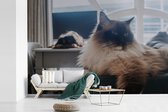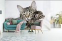 Papier peint vinyle - Deux chats American Shorthair câlins largeur 390 cm x hauteur 260 cm - Tirage photo sur papier peint (disponible en 7 tailles)