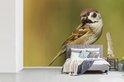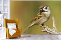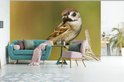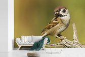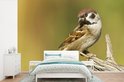 Papier peint vinyle - Gros plan d'un moineau sur une brindille largeur 390 cm x hauteur 260 cm - Tirage photo sur papier peint (disponible en 7 tailles)