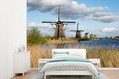 Papier peint vinyle - Moulins à vent de Kinderdijk au coucher du soleil aux Pays-Bas largeur 450 cm x hauteur 300 cm - Tirage photo sur papier peint (disponible en 7 tailles)