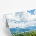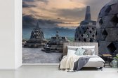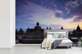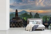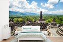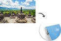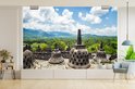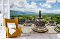 Papier peint vinyle - Nuages blancs sur le temple de Borobudur largeur 390 cm x hauteur 260 cm - Tirage photo sur papier peint (disponible en 7 tailles)