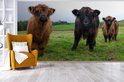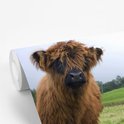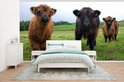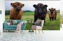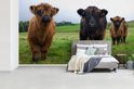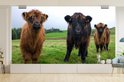 Papier peint vinyle - Trois veaux Highlander écossais largeur 535 cm x hauteur 300 cm - Tirage photo sur papier peint (disponible en 7 tailles)
