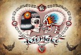 Papiers peints Alchemy Skull Flowers Tattoo | XXXL - 416 cm x 254 cm | Polaire 130g / m2