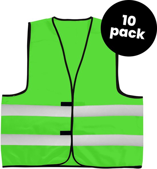 Vous recherchez des gilets de sécurité vert lime pour la circulation, au travail ou pour un événement ? Chez nous, vous pouvez acheter un pack de 10 gilets de sécurité verts au meilleur prix. Ces gilets de sécurité sont vert clair (lumineux) et comportent deux bandes réfléchissantes (5 cm) sur tout le corps. Les gilets ont une fermeture velcro à l'avant pour que vous puissiez facilement ajuster la taille.