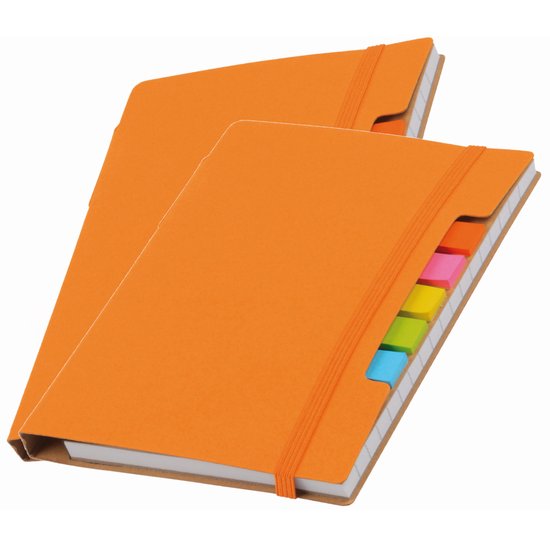 Paquet de 2 x cahiers/cahiers scolaires A5 ligné orange. Bloc-notes au format A5. Avec stylo d'écriture noir, bande de fermeture élastique et notes autocollantes.
