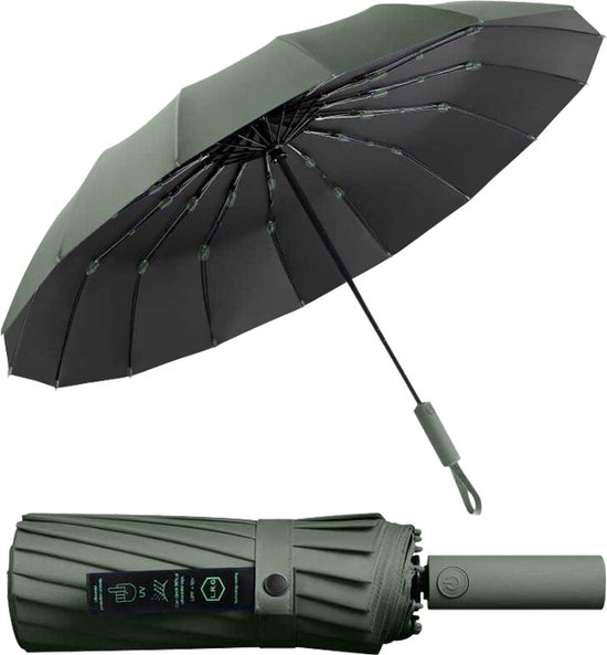 Parablu Parapluie Pliant Coupe-Vent à 16 baleines, Grand Parapluie Pliant à Ouverture Automatique, Coupe-Vent, Parasol UV, Vert foncé