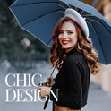 + La housse qui l'entoure est très pratique car elle maintient les rabats du parapluie ensemble. Cela rend le parapluie aussi compact que possible et facile à transporter dans un sac.