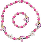 Fako Bijoux® et bracelet pour enfants - Bois - Licorne & Fleurs Rose