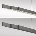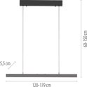 Cette lampe suspendue est livrée avec 3 bandes LED de 39 Watt au total. Au total, cette lampe donne 2085 Lumens de lumière et cela peut être facilement atténué au moyen d'un variateur tactile sur le luminaire. La couleur de la lumière peut également être réglée de 2700 à 5000 Kelvin avec un autre bouton tactile. La longueur peut être réglée en continu grâce à un ingénieux système coulissant, permettant de régler la longueur de 120 cm à 179 cm.