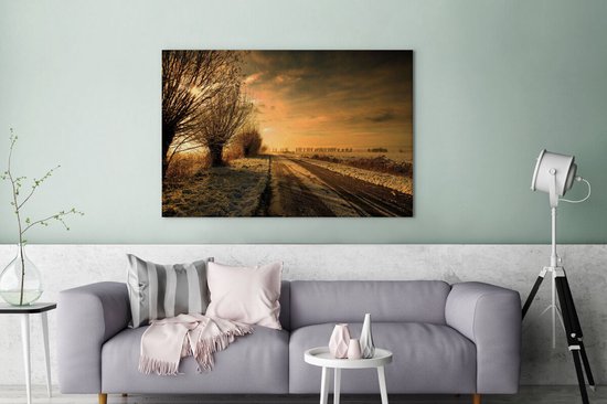 Paysage d'hiver à Dokkum en Frise 120x80 cm - Tirage photo sur toile (Décoration murale salon / chambre)