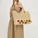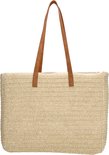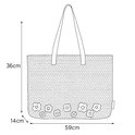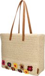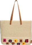 Grand cabas estival de la série Natural Life de PE- Florence. Le compartiment principal peut être fermé avec une fermeture éclair. À l'intérieur se trouve une poche zippée. L'extérieur du sac est fait de papier crocheté et l'intérieur du sac est doté d'une doublure en tissu polyester. Les fleurs au crochet sur le sac donnent au sac un look joyeux. Grâce aux deux sangles de transport de longueur moyenne, vous pouvez porter le sac sur l'avant-bras ou sur l'épaule.