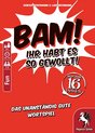 Pegasus Spiele BAM! - Ihr habt es so gewollt!. Type product: Kaartspel, Genre: Feest, Aanbevolen leeftijd (min): 16 jaar Feest Kaartspel