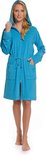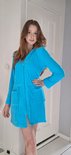 Je cherchais un peignoir plus court pour une utilisation dans le sauna et ce modèle peut également être porté de manière ample. Grâce à la fermeture éclair, je n'ai pas besoin d'utiliser de ceinture, ce qui est mieux pour ma silhouette. Belle capuche, juste dommage qu'elle ait des manches longues, 3/4 aurait été mieux.