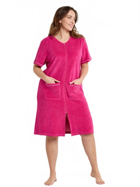 Féminisé avec une finition croquet en bas des manches courtes et en haut des 2 poches plaquées à l'avant, le peignoir est un cocon de douceur. Fermeture éclair complète sur le devant sous l'encolure ronde. Base droite. maat: 34/36, 38/40, 42/44, 46/48, 50/52, 54/56, 58/60