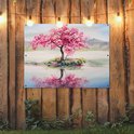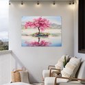 Peinture d'affiche de jardin - Fleur - Arbre en fleurs - Water - Peinture à l'huile - 130x90 cm - Décoration murale extérieure - Affiche de jardin - Toile de jardin - Affiche de clôture - Peinture de jardin
