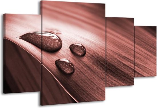 Macro de peinture sur toile, goutte | Marron, rouge | 160x90cm 4 Liège. Cette peinture sur toile fait partie de la collection GroepArt et c'est un moyen simple et rapide de transformer complètement n'importe quel mur! Nos peintures sur toile contiennent de belles images imprimées sur du matériel en toile, tendues sur un cadre en bois. Cette peinture est disponible en 45 tailles sur notre site Internet. Personnalisation possible! Cette peinture sur toile mesure 160 cm x 90 cm. Incl. jeu de suspension (à confirmer par vous-même). Le paquet contient 4 panneaux de peinture, manuels, suspendus, protégés par du papier bulle, emballés dans une boîte solide.