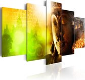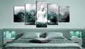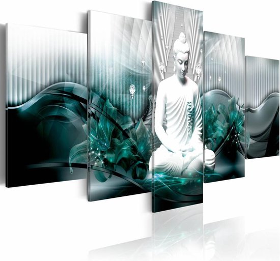 Peinture - Méditation azur, Bouddha, bleu et blanc, 5 parties