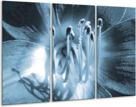 Peinture sur toile fleur | Bleu | 120x80cm 3 Liège. Cette peinture sur toile fait partie de la collection GroepArt et c'est un moyen simple et rapide de transformer complètement n'importe quel mur! Nos peintures sur toile contiennent de belles images imprimées sur du matériel en toile, tendues sur un cadre en bois. Cette peinture est disponible en 45 tailles sur notre site Internet. Personnalisation possible! Cette peinture sur toile mesure 120 cm x 80 cm. Incl. jeu de suspension (à confirmer par vous-même). Le paquet contient 3 panneaux de peinture, manuel, ensemble de suspension, protégé par du papier bulle, emballé dans une boîte solide.