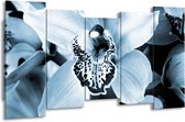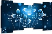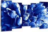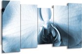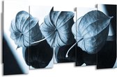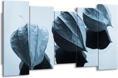 Peinture sur toile fleur | Bleu blanc | 150x80cm 5Liège. Cette peinture sur toile fait partie de la collection GroepArt et c'est un moyen simple et rapide de transformer complètement n'importe quel mur! Nos peintures sur toile contiennent de belles images imprimées sur du matériel en toile, tendues sur un cadre en bois. Cette peinture est disponible en 45 tailles sur notre site Internet. Personnalisation possible! Cette peinture sur toile mesure 150 cm x 80 cm. Incl. jeu de suspension (à confirmer par vous-même). Le paquet contient 5 panneaux de peinture, manuel, jeu de suspension, protégé par du papier bulle, emballé dans une boîte solide.