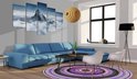 Peinture - Sommet de la montagne dans les nuages, décoration murale, Blauw/ Wit, 5 panneaux