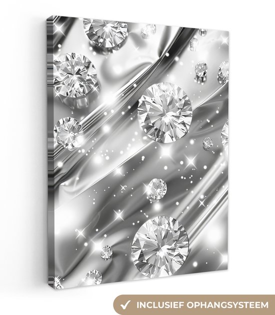 Peinture sur toile 120x160 cm - Décoration murale Abstrait - Diamant - Luxe - Moderne - Argent - Décoration murale salon - Décoration chambre moderne - Tableaux abstraits