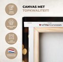 La photo est imprimée sur une toile robuste de 260 grammes de 0,41 mm d'épaisseur. Le lin est tendu étroitement sur un cadre en bois de deux centimètres d'épaisseur. Ce cadre en bois est fabriqué à partir de bois de pin de qualité approuvé FSC. Un système de suspension peut être commandé en option avec le produit pour fixer facilement l'impression au mur.