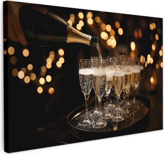 Peinture sur toile 120x80 cm - Décoration murale Lumières - Champagne - Plateau - Verres - Accessoires de Décoration murale - Décoration murale Cuisine - Peintures sur toile