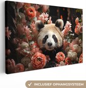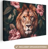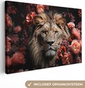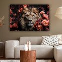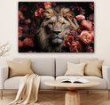 Peintures sur toile - Lion - Animal - Nature - Botanique - Fleurs - Rose - Salon - Chambre