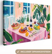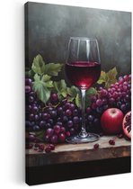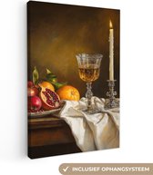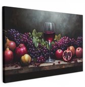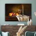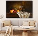 Peinture sur toile 140x90 cm - Décoration murale Fruits - Nature morte - Vin - Bougie - Décoration murale murale salon - Décoration chambre - Accessoires de chambre - Peintures sur toile