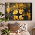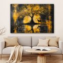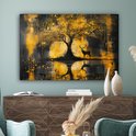 Peinture sur toile 150x100 cm - Décoration murale Arbre - Aspect peinture - Cerf - Nature - Or - Décoration murale murale salon - Décoration chambre - Accessoires de chambre - Peintures
