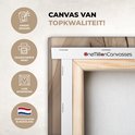La photo est imprimée sur une toile robuste de 260 grammes de 0,41 mm d'épaisseur. Le lin est tendu étroitement sur un cadre en bois de deux centimètres d'épaisseur. Ce cadre en bois est fabriqué à partir de bois de pin de qualité approuvé FSC. Un système de suspension peut être commandé en option avec le produit pour fixer facilement l'impression au mur.