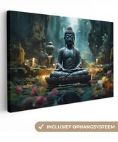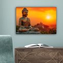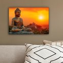 Peinture sur toile 30x20 cm - Bouddha - Image - Coucher de soleil - Bouddha - Zen - Japon - Décoration murale - Décoration murale salon - Décoration chambre - Tissu mural intérieur - Accessoires de maison