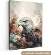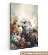Peinture sur toile 40x30 cm - Décoration murale Aigle - Aigle - Vogel - Fleurs - Nature - Décoration murale murale salon - Décoration chambre - Accessoires de chambre - Peintures