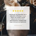 La photo est imprimée sur une toile robuste de 260 grammes de 0,41 mm d'épaisseur. Le lin est tendu étroitement sur un cadre en bois de deux centimètres d'épaisseur. Ce cadre en bois est fabriqué à partir de bois de pin de qualité approuvé FSC. Un système de suspension peut être commandé en option avec le produit pour fixer facilement l'impression au mur.