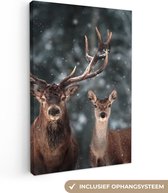 Toile - Cerf - Neige - Animaux - Hiver - Forêt - Peinture sur toile - 80x120 cm - Toile salon - Peintures sur toile