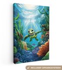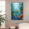 Peinture sur toile 80x120 cm - Décoration murale chambre enfant Tortue - Animaux aquatiques marins - Sous-marin - Algues - Décoration murale murale chambre bébé - Décoration chambre garçon et fille - Accessoires Bébé - Peintures