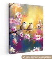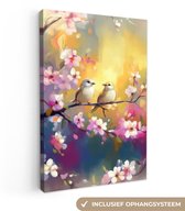 Peinture sur toile 80x120 cm - Décoration murale Cygne - Vogel - Décoration - Rose - Décoration murale murale salon - Décoration chambre - Accessoires de chambre - Peintures sur toile