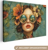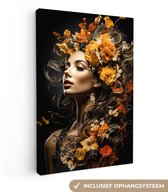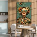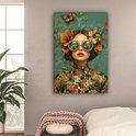 Peinture sur toile 80x120 cm - Décoration murale Femme - Fleurs - Papillons - Nature - Vintage - Décoration murale murale salon - Décoration chambre - Accessoires de chambre - Peintures