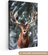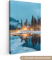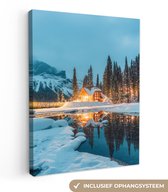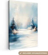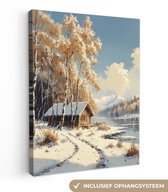 Peinture sur toile 80x120 cm - Décoration murale Maison - Forêt - Hiver - Nature - Neige - Décoration murale murale salon - Décoration chambre - Accessoires de chambre - Peintures