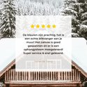 La photo est imprimée sur une toile robuste de 260 grammes de 0,41 mm d'épaisseur. Le lin est tendu étroitement sur un cadre en bois de deux centimètres d'épaisseur. Ce cadre en bois est fabriqué à partir de bois de pin de qualité approuvé FSC. Un système de suspension peut être commandé en option avec le produit pour fixer facilement l'impression au mur.