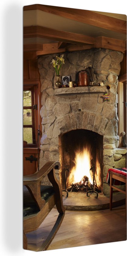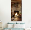 Peinture sur toile 80x160 cm - Décoration murale Feu brûlant dans une cheminée - Décoration murale murale salon - Décoration chambre - Accessoires de chambre - Peintures